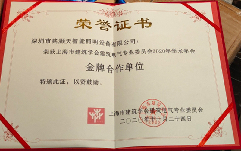 合作單位表彰并榮獲了金牌合作單位的榮譽證書!